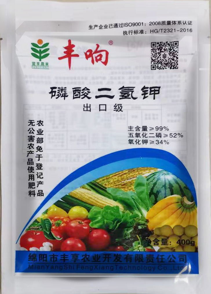 執(zhí)行標(biāo)準(zhǔn)HG/T2321-2016,豐響熱法99%高品質(zhì)磷酸二氫鉀。能有效為植物提供速效磷鉀,壯根、狀桿、抗旱、抗寒、抗逆、抗倒伏、促花、?;?、保果、改善品質(zhì)、提高產(chǎn)量。